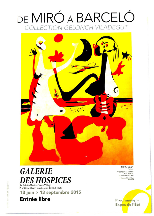 De Miró à Barceló. 2015 Catálogo, De Miró à Barceló Septiembre 2015 Sala de Exposición Libro de artista. Joan Miró Obra de Silvia Pagliano. Aguatinta Silvia Pagliano y su obra Chillida. Aguatinta Matisse. Litografía Gloria y grabado de S. Pagliano Sala Piso Superior Picasso. Aguatinta Andy Warhol Libro de artista Galerie des Hospices Exposición de Miró à Barceló. 2015