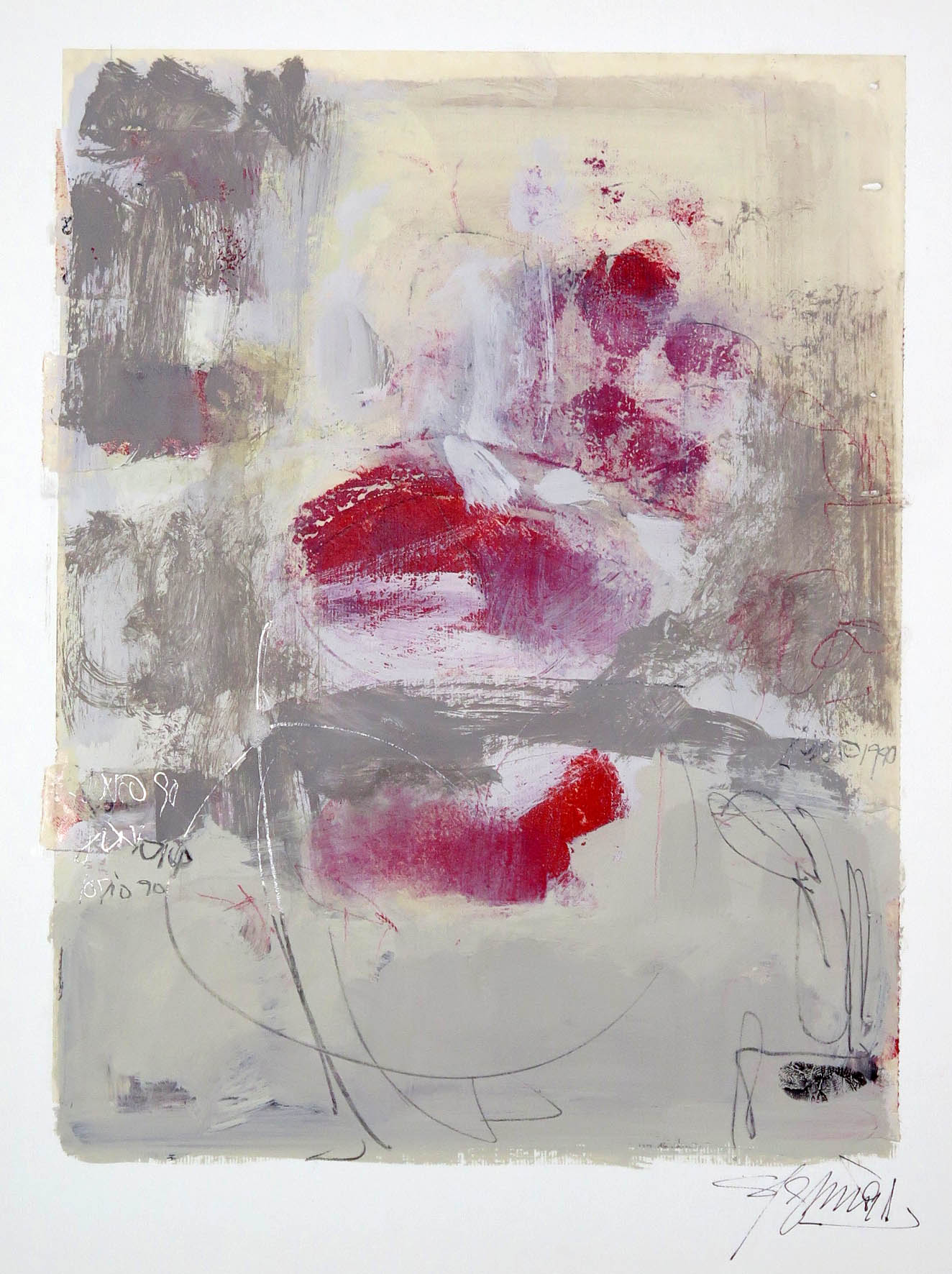 Rojo carne. Collage y témpera. 26 x 34 cm.1990