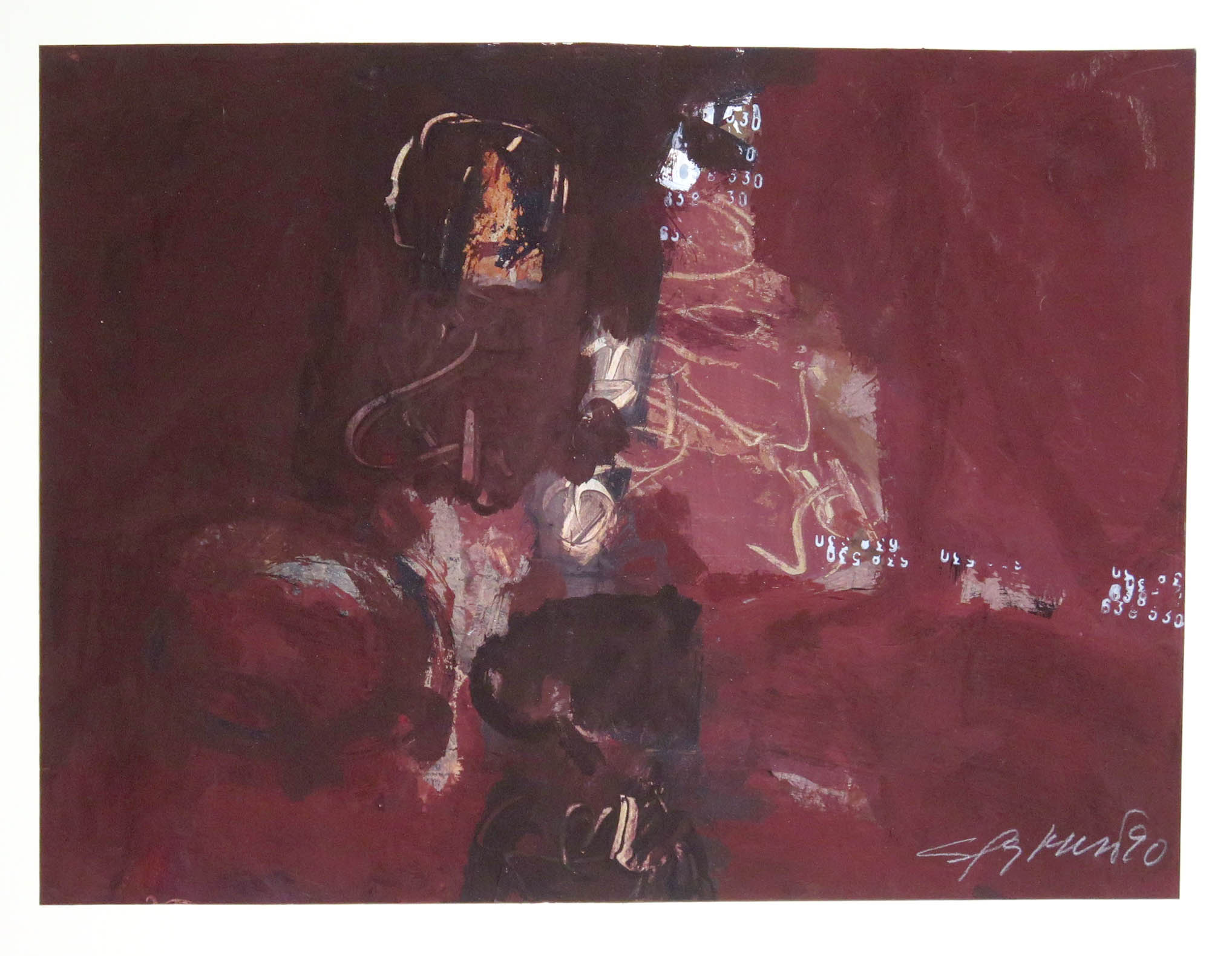 Signo. Témpera y collage sobre papel de calco. 22 x 18 cms. 1990