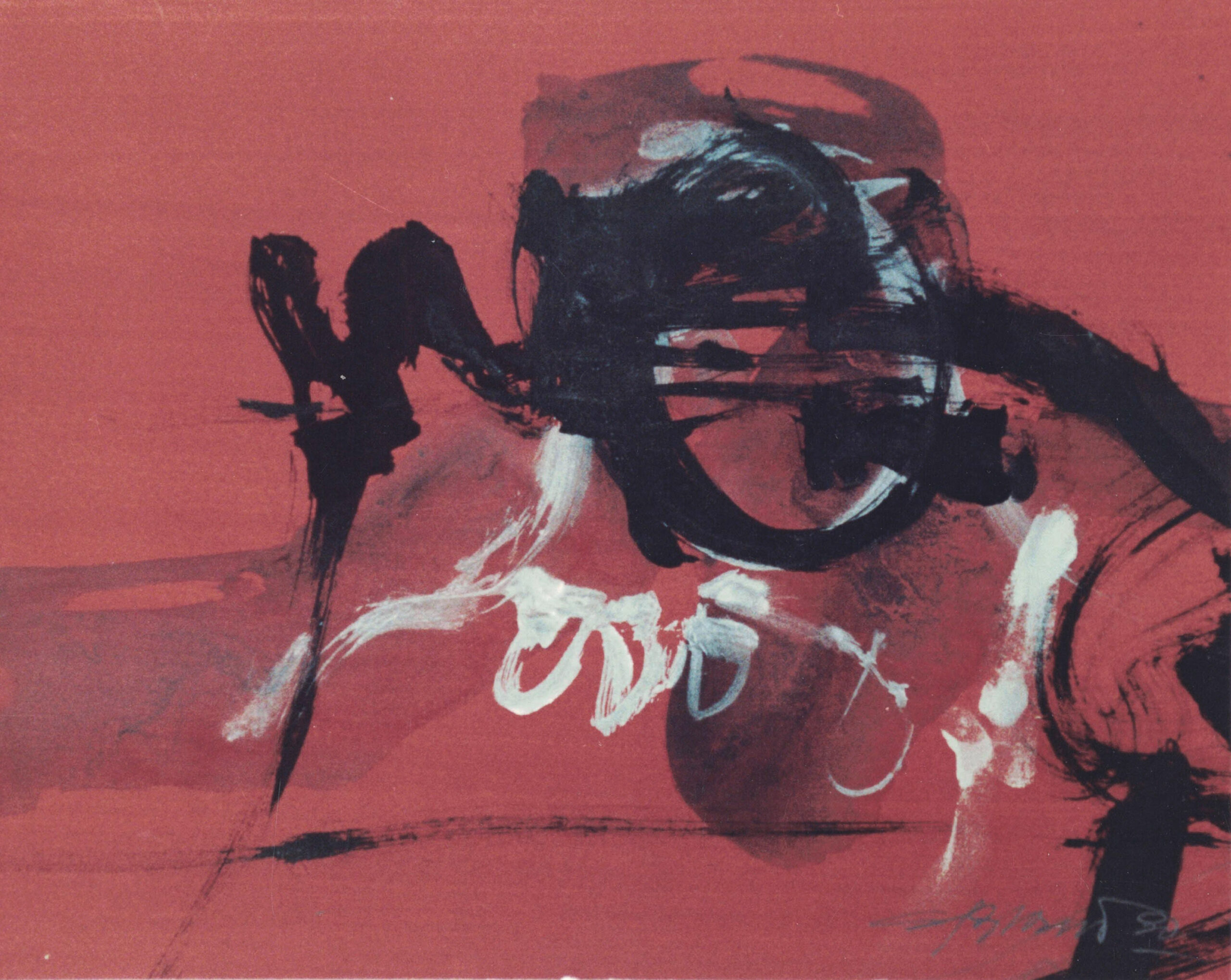 Mancha negro-rojo.Témpera tinta sobre papel. 30 x 26 cms. 1990.